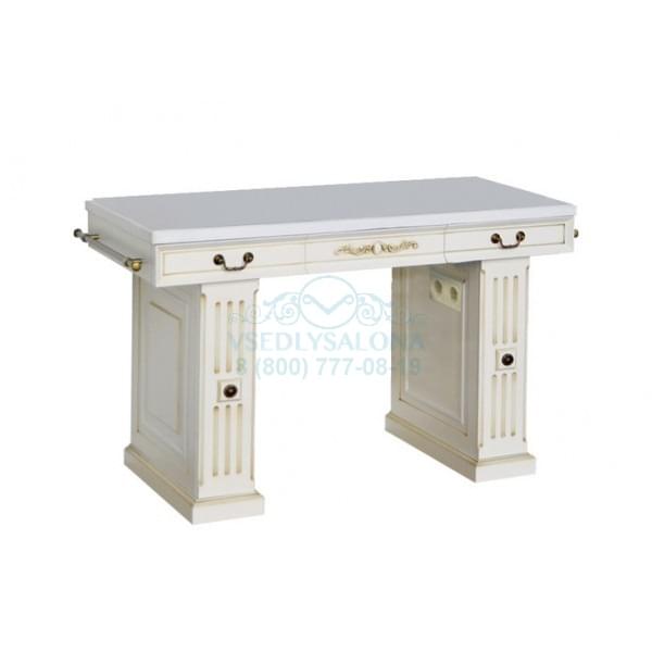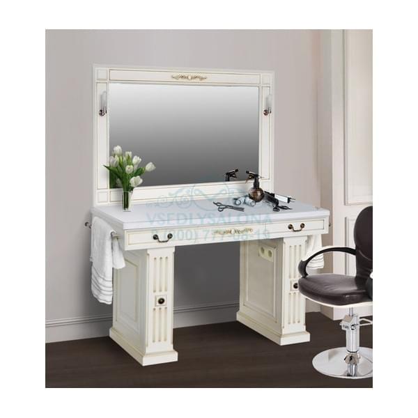Серия мебели для парикмахерской «Прага» представлена тумбой и зеркалом. Сочетание монументальности и изящества, присущее античной и классической архитектуре вдохновили наших мастеров на создание этой серии мебели. Цвет «крема» является изысканным сочетанием слоновой кости и патины темного ореха, светлый образ и отпечаток истории, именно так можно его описать. В опорах тумбы скрыты карго, в которых удобно разместятся парикмахерские принадлежности мастеров. Полочка, соединяющая опоры подобно мосту, удобна для хранения полотенец и парикмахерского белья, а отделанные искусственной кожей ящики просторны, что позволит вместить в них все необходимое и защитить от влаги. Столешница отлита из искусственного камня, что обеспечивает стойкость к влаге, различным моющим и чистящим средствам, сочетая красоту камня и функциональность современного материала.