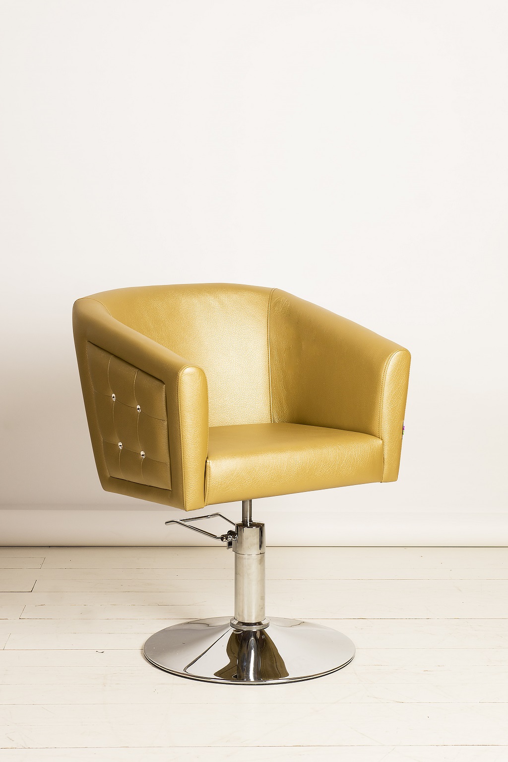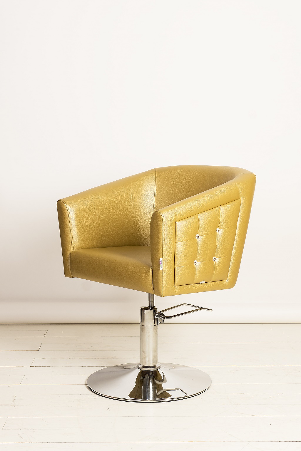 Кресло обшито экокожей высокого качества, материал не боится пятен от краски и укладочных средств. Все следы творческой работы мастеров легко удаляются с поверхности изделия.