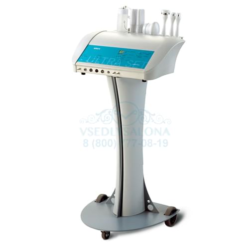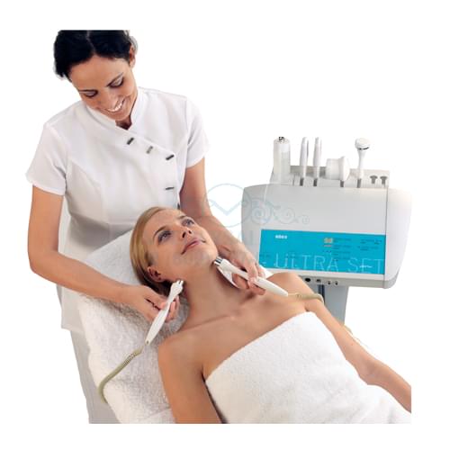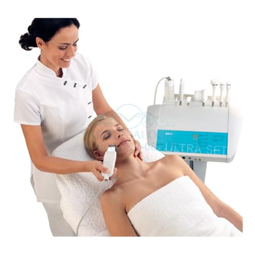 Ultra Set - современный ультразвуковой аппарат для проведения пилинга и ультрафонофореза лица и тела. Аппарат имеет современный дизайн и компактный размер. Укомплектован двумя УЗ-лопатками различного размера  с частотой 28кГц (стандартной и малой – для труднодоступных зон), тремя излучателями (большим с частотой 1МГц для тела, двумя малыми с частотой 3МГц для лица) и функцией вакуум-спрей для создания аэрозоля с целью распыления жидких косметических средств или воды, что оптимизирует процедуру вакуумной чистки.