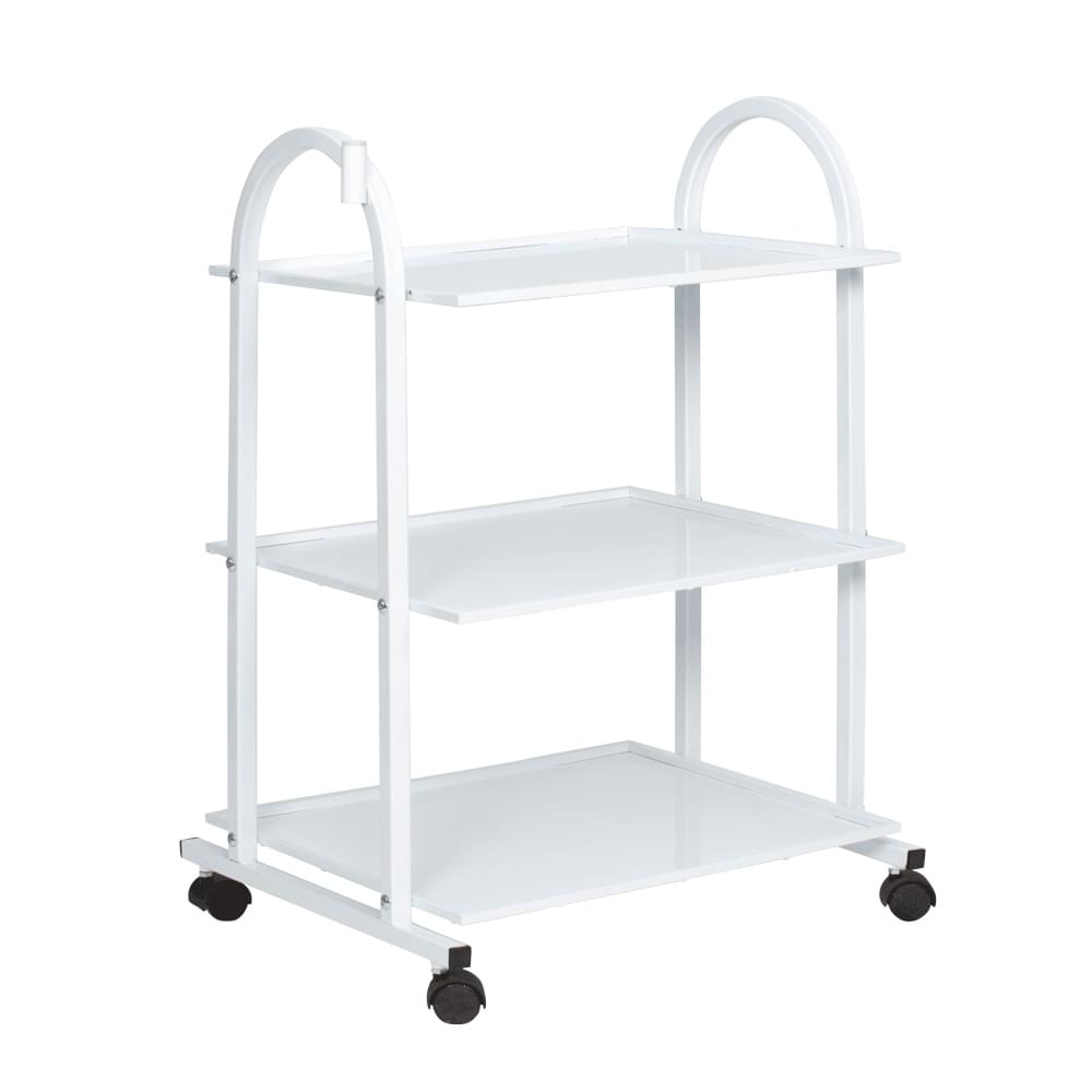 Столик косметологический на колесиках для профессионального использования на металлическом каркасе с тремя полками из белого металла или стекла с бортиками по краям и отверстиями для лампы-лупы. Подходит в кабинеты: косметологический, педикюрный, массажный и СПА процедур.