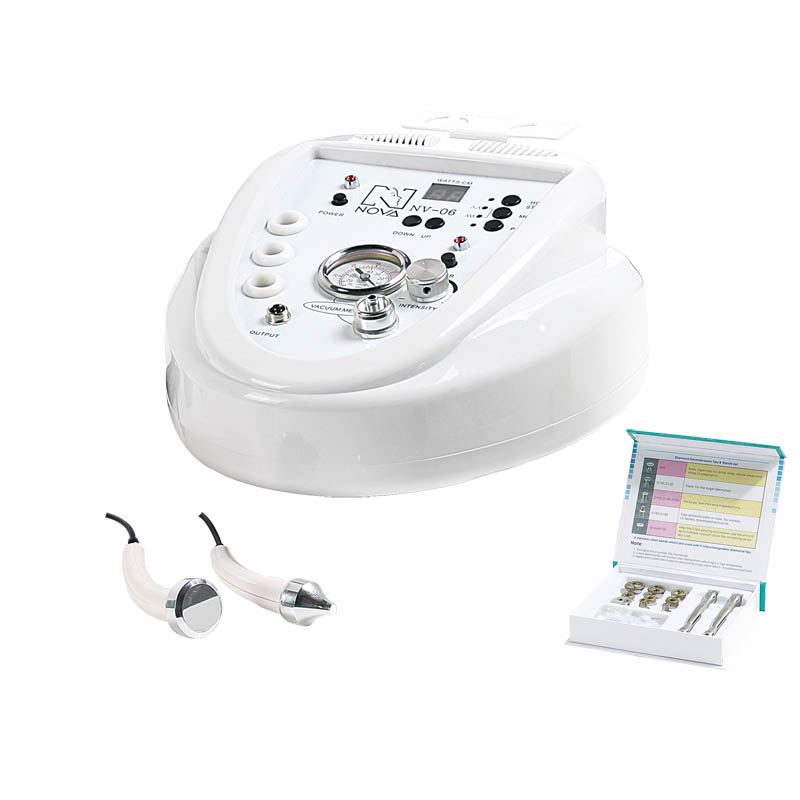 Аппарат алмазной микродермабразии NOVA NV-06 (2 в 1) – оборудование для алмазного пилинга и ультразвуковой терапии (фонофореза). Пользуется большой популярностью среди косметологов, так как позволяет за один сеанс проводить в комплексе эффективные омолаживающие и уходовые процедуры. Аппарат имеет удобные размеры, богатую комплектацию и отличается простотой в работе, благодаря чему отлично подходит как для опытных специалистов, так и для начинающих косметологов.