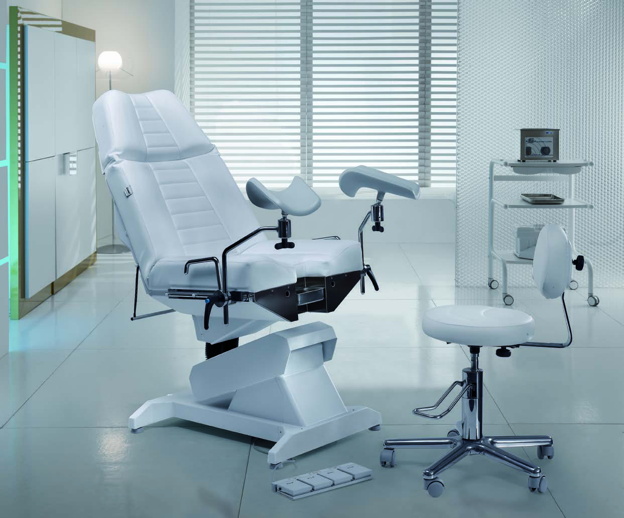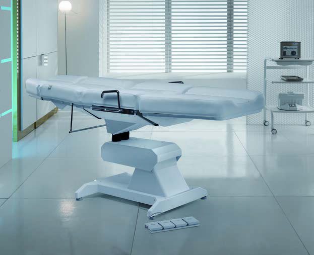Здесь используется три двигателя, позволяющих удобно и быстро настроить положение кресла-кушетки под конкретного клиента и определенные врачебные задачи. Есть функция автоматического сброса положения. Матрас имеет удобную анатомическую форму, делающую все процедуры более комфортными для клиента. Модель доступна в нескольких цветах. Корпус прочный и долговечный, выполнен из прочной нержавеющей стали.