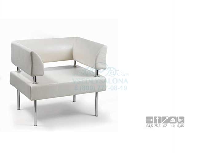 Кресло для ожидания, мягкие элементы и подлокотники обиты искусственной кожей, ножки металлические.