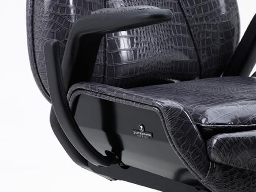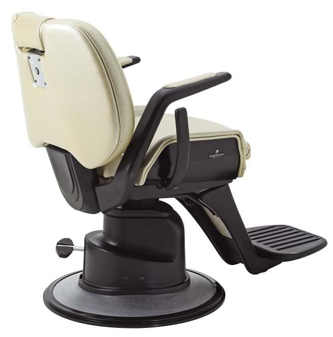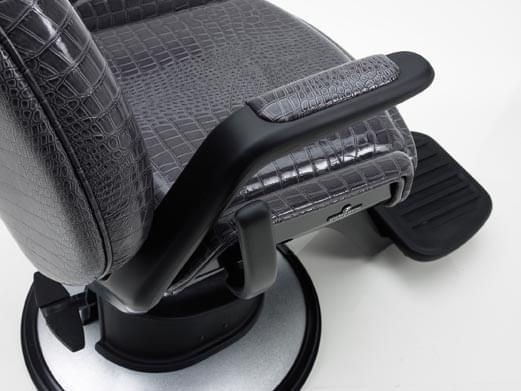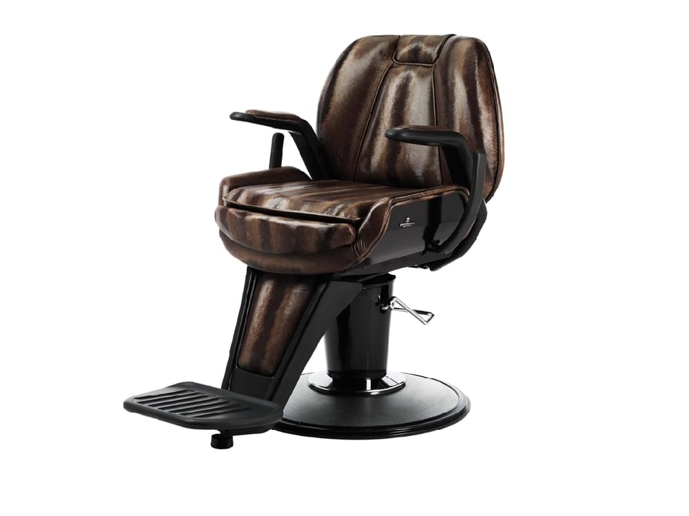 Кресло для клиента – мужское, выполнено из высококачественного поролона, каркас обтянут искусственной кожей, с выдвижным подголовником и откидной спинкой. Подлокотники выполнены из пластика, пластиковая подставка под ноги. Комплектуется гидроподъемником с фиксацией поворота, дисковая основа. Размер (ДхШ): 105x70