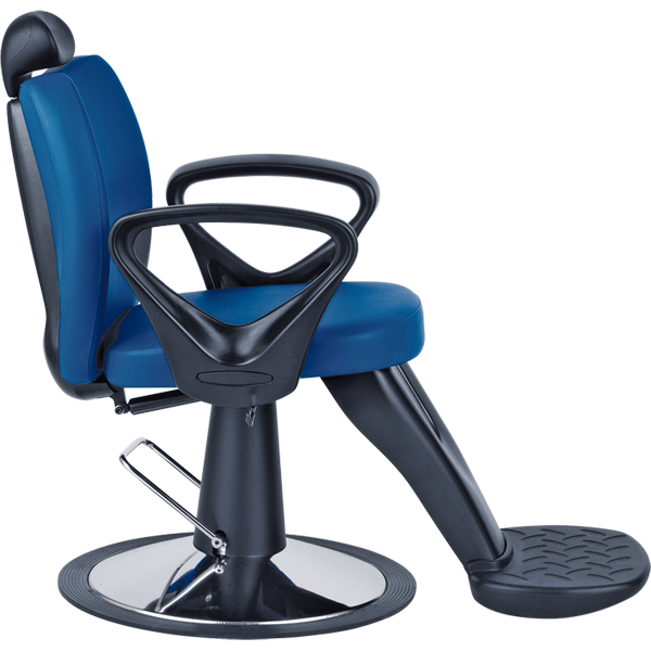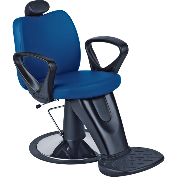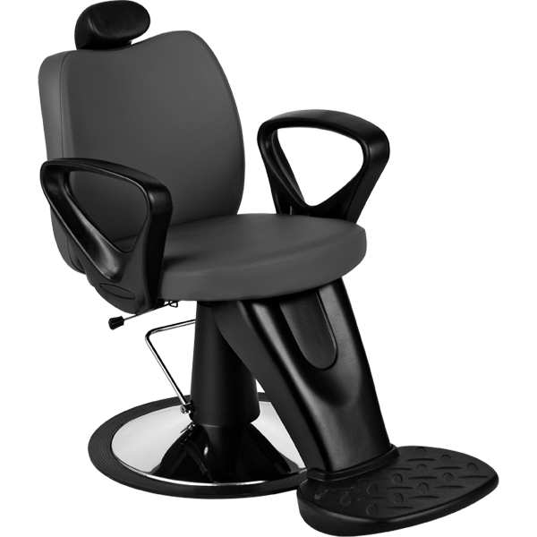 Кресло парикмахерское мужское на диске, выполнено из высококачественного поролона, каркас обтянут искусственной кожей, регулировка высоты гидравлика, с откидывающейся спинкой, выдвижной подголовник, черные пластиковые подлокотники, подножка.