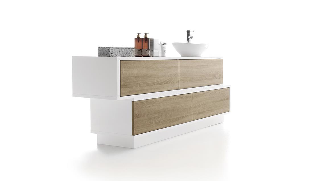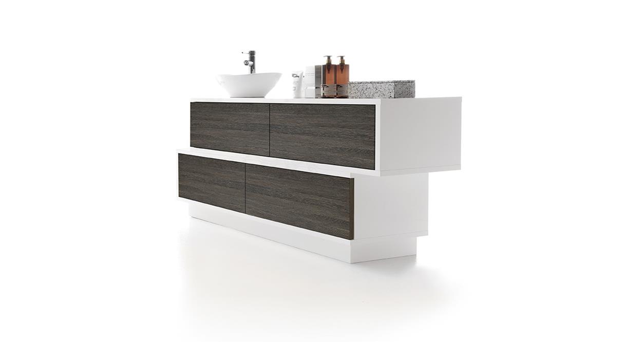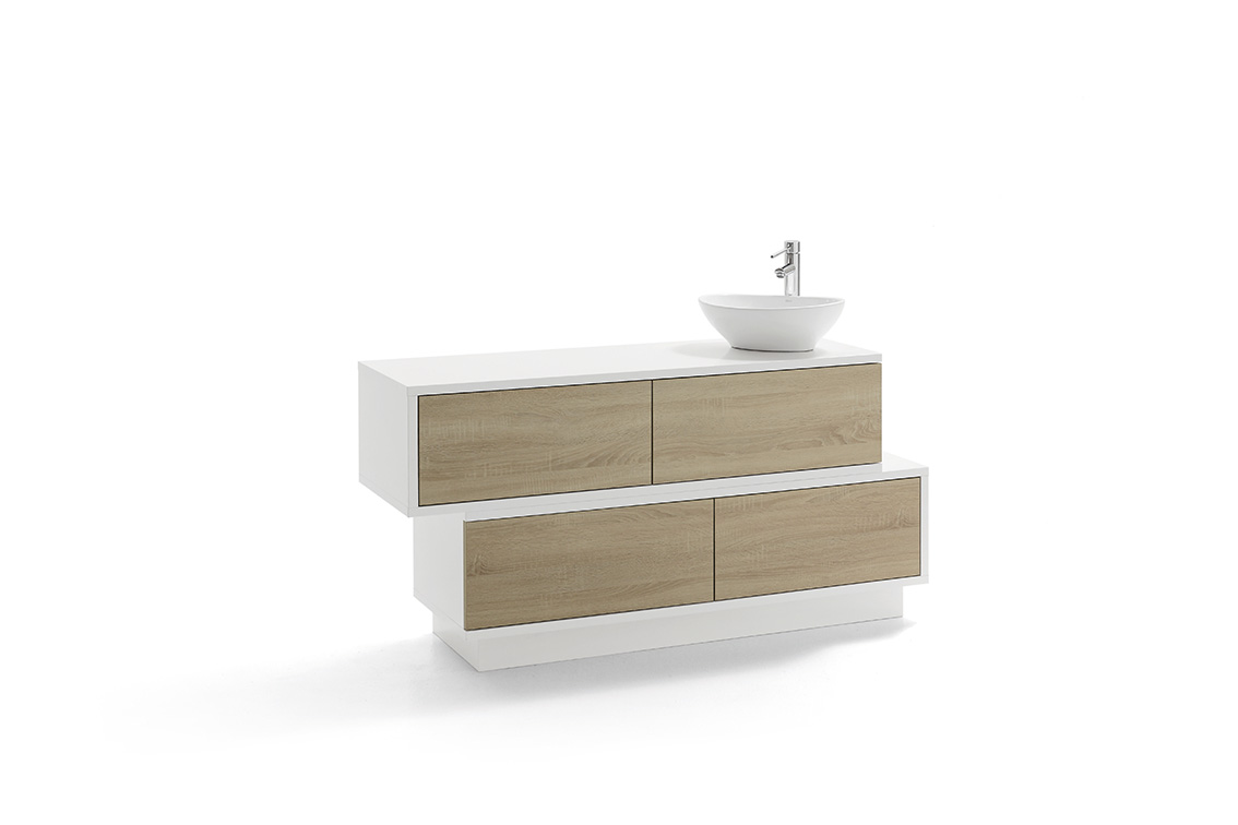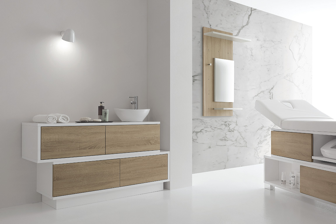 Дополнительно мебель может комплектоваться раковиной со смесителем из хромированной стали. Ящики могут располагаться друг над другом или же быть смещенными относительно центра. Этот вариант мебели можно установить в любом СПА-салоне или салоне красоты.