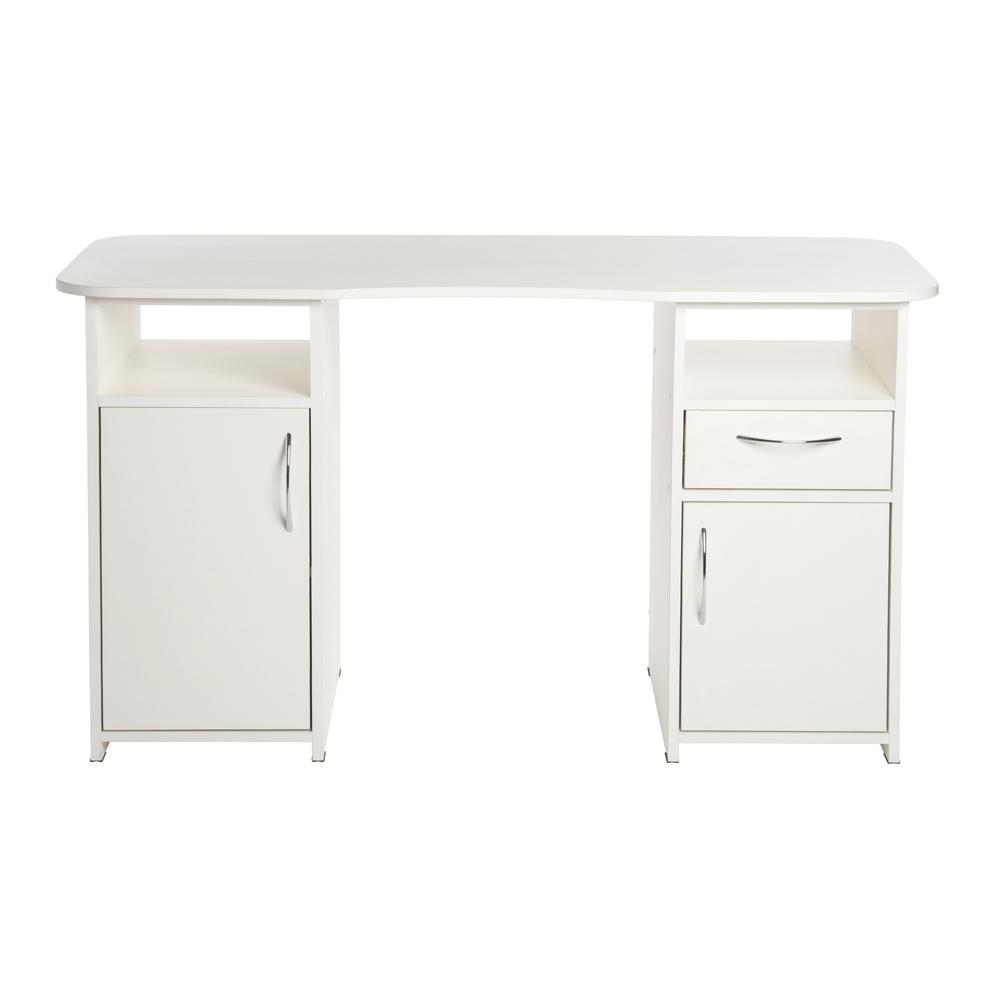Стол двухтумбовый, в одной тумбе расположены – сквозная ниша, выдвижной ящик и распашная дверь, в другой тумбе – сквозная ниша и распашная дверь.