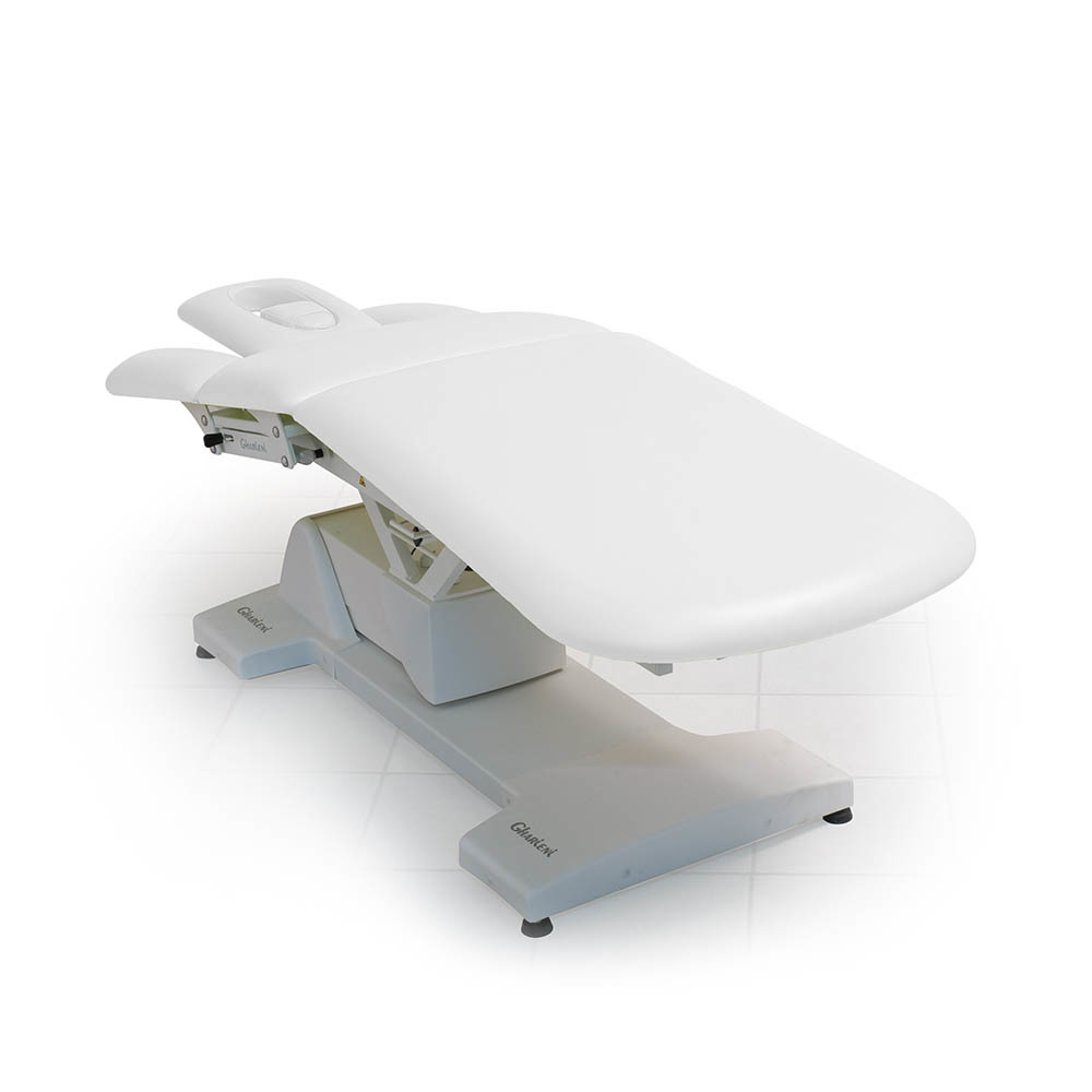 • один привод предназначен для регулировки высоты кушетки, другой – для изменения положения средней секции с наклоном до 28° для применения постурального дренажа