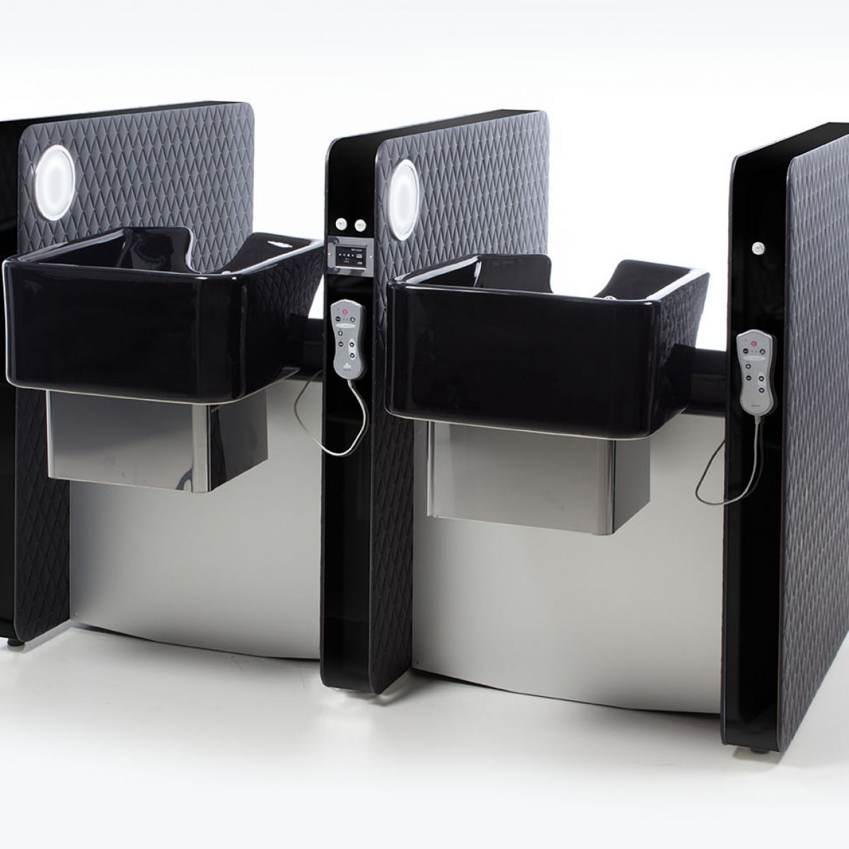 Мойка парикмахерская "VIP LOUNGE 3P" - трехместная с высоким уровнем комфорта и приватной зоной. Мойка оснащена мягкими и комфортными подлокотниками и системой воздушного массажа AIR-SHIATSU. Также мойка с артикулом G-м60002638 оснащена электрической регулировкой сидения, спинной части и опоры для ног. Движения синхронизированные, что позволяет клиенту принять положение "полулежа" обеспечивая максимальный комфорт. Мойка комплектуется глубокой керамической раковиной с регулировкой угла наклона и комплектом смесителя. Обивка - искусственная кожа высшего качества. Отделка боковин - исскуственная кожа коллекции "PRIVACY COLLECTION" или акрил. Окантовка боковин - сталь.