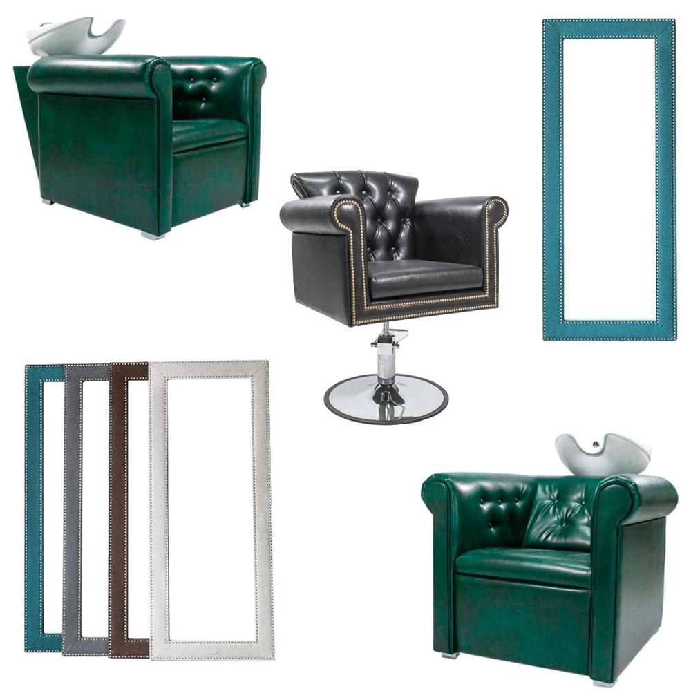 Цвет рамы можно подобрать из предложенных в каталоге – изумрудный, серый, коричневый и белый. Все они будут гармонично сочетаться с мебелью. Обивка выполнена из износоустойчивого заменителя кожи. Чтобы узнать стоимость парикмахерского комплекта, обращайтесь к менеджеру.
