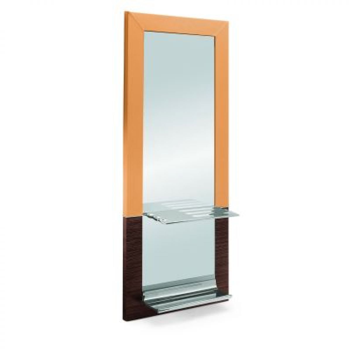 Парикмахерское зеркало "Edo Pelle" - с рамой из лакированного бука и натуральной кожи. Зеркало прямоугольной формы на предварительно ламинированной конструкции. Полка и подставка для ног из полированного алюминия. Сделано в Италии.