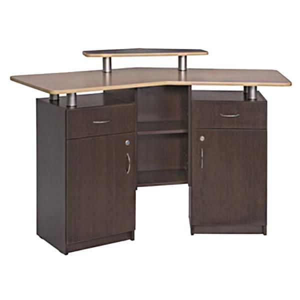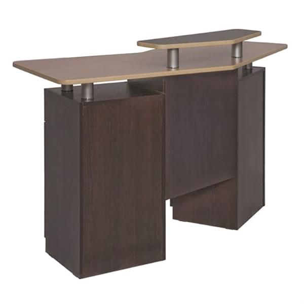 Администраторская стойка «Соната» сразу же привлекает к себе внимание. Каретная стяжка с мягкой текстурой выглядит современно и стильно, придает вашему заведению статуса и изысканности. Дополнительный эффект достигается за счет использования элегантных резных ножек, выступающих в роли некоего акцентного элемента. Со стороны администратора практически всю площадь занимают полочки и дверки, где можно разместить все для работы и личные вещи, если надобность в этом есть. Цвета отделки можно выбрать практически любые, что позволяет реализовать самые креативные идеи и придать вашей парикмахерской или салону красоты больше индивидуальности.