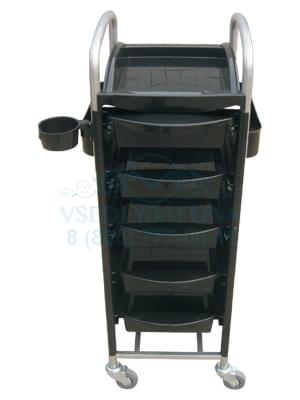 Парикмахерская тележка Т-30 оснащена глубокими и вместительными ящиками для парикмахерских принадлежностей, а также фенодержателем для еще большего удобства работы. Она выполнена в классическом черном цвете, что делает ее универсальной моделью практически для любой современной парикмахерской или барбершопа.