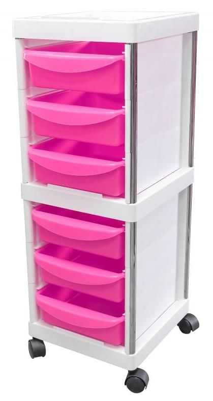 Изготовлена тележка из прочного надежного пластика, который обладает хорошими свойствами и не деформируется. Приятный розовый цвет выдвижных ящиков обязательно подойдет по любой интерьер парикмахерской. Купив такую тележку в нашем магазине, вы сделаете правильный выбор!