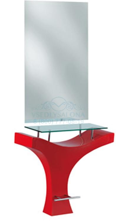 Зеркало парикмахерское одностороннее крепление к полу. Каркас выполнен из пластика белого, черного или красного цвета, плоская стеклянная столешница. Металлическая подставка под ноги. Размер (ДхВхШ): 85х200х30